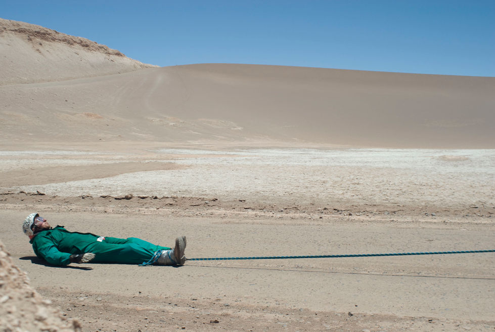 Performance made on 01/01/2010, where I was dragged by a car, along the entire length of the “vale de la muerte”, which is located in the Atacama desert (Chile)